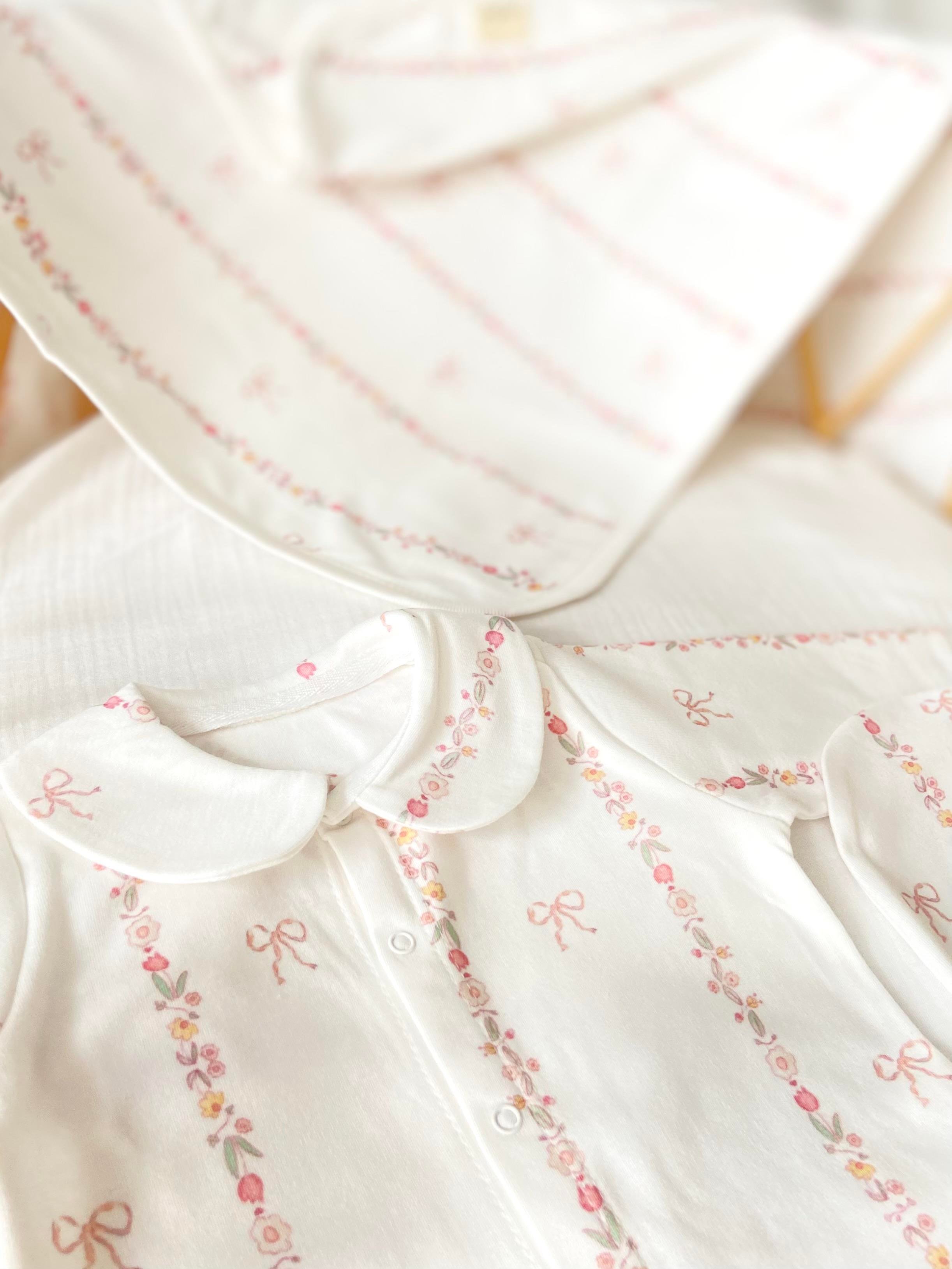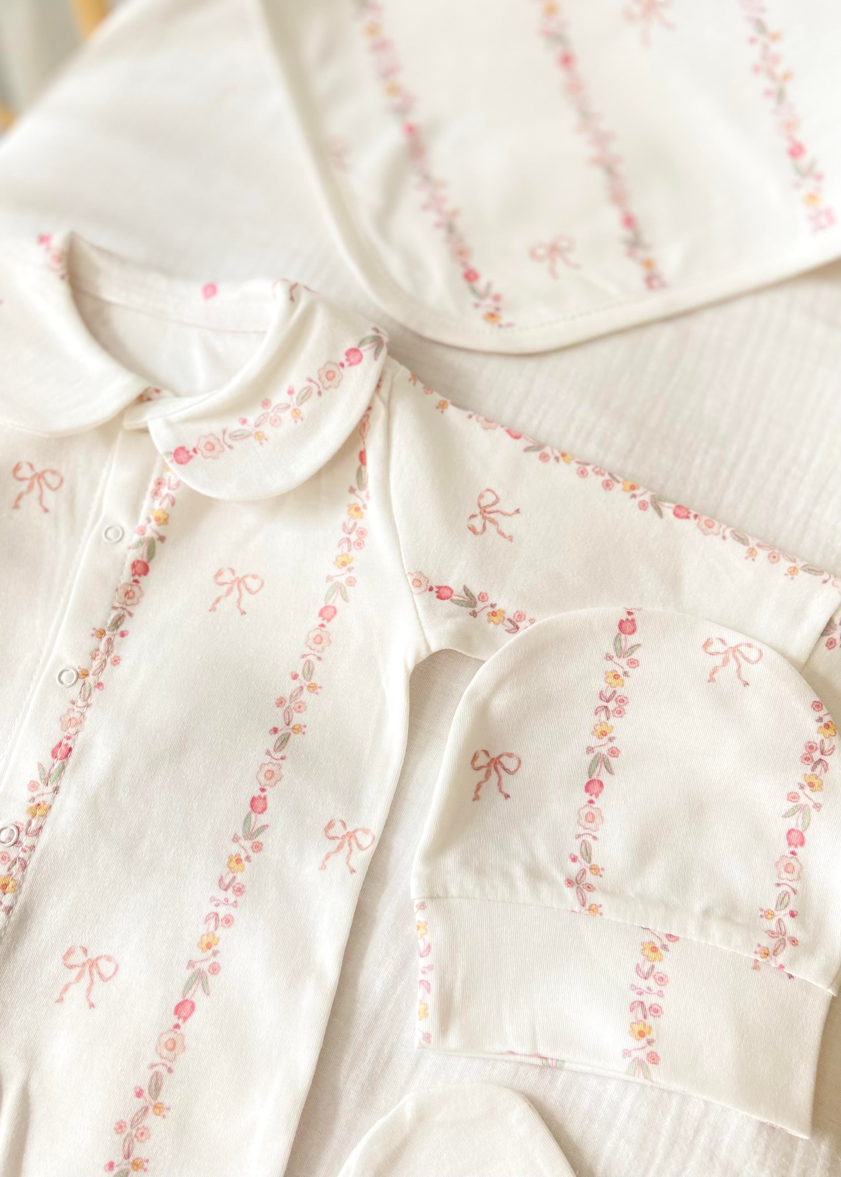 Bow Line 4 Piece Hospital Discharge Set 100% Cotton