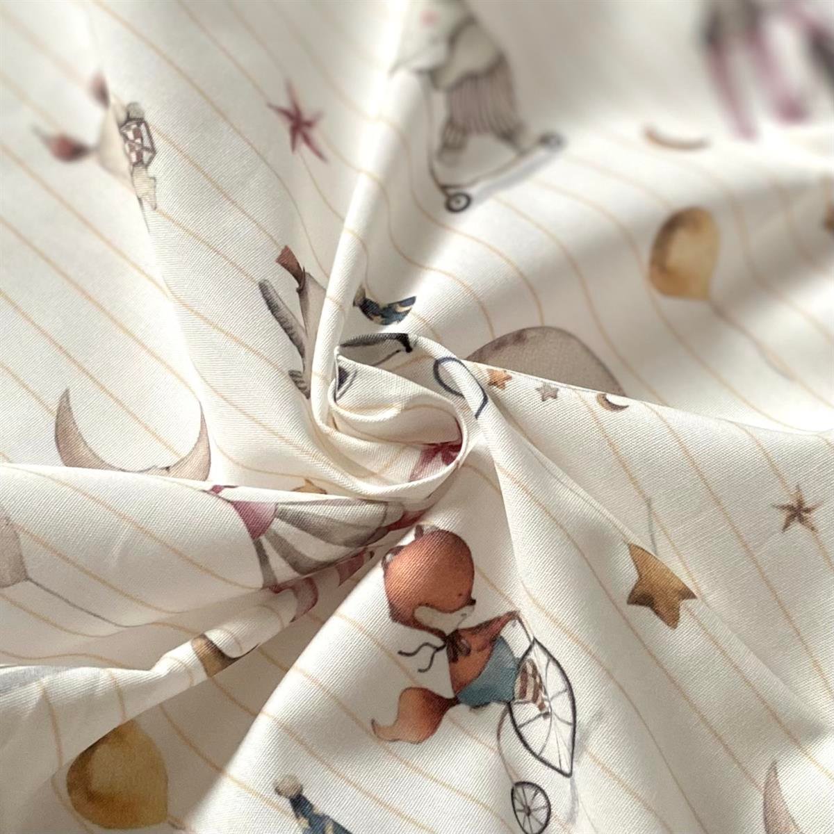 Organic dye was used in the pattern printing. Poplin fabric can be used in baby, children, and adult clothing; in home textiles such as tablecloths, cushion covers, duvet covers, decorative backdrops, etc.; and in hobby areas such as hair clips, bags, toys, etc. It can also be used as lining for trench coats, coats, and bags.