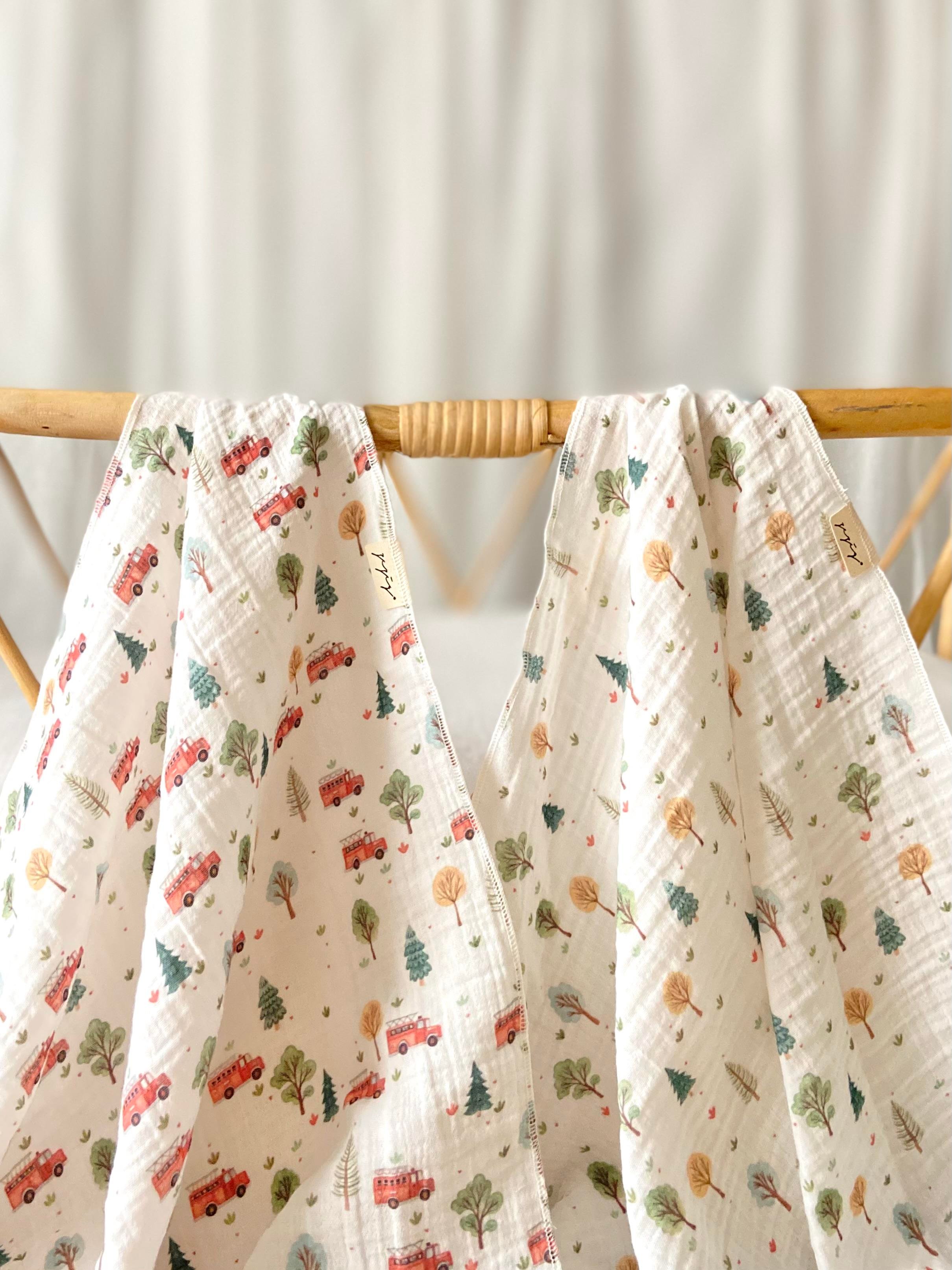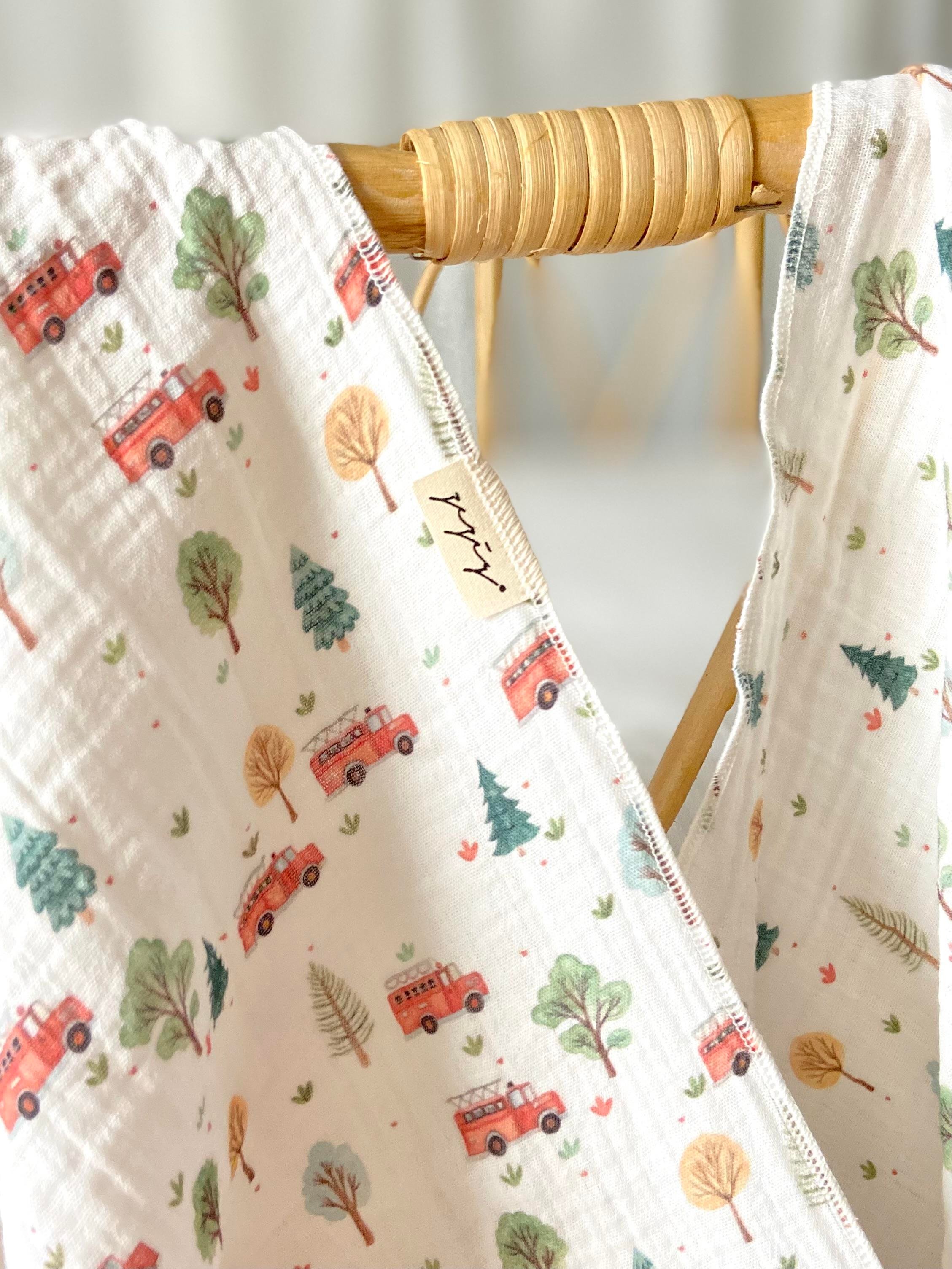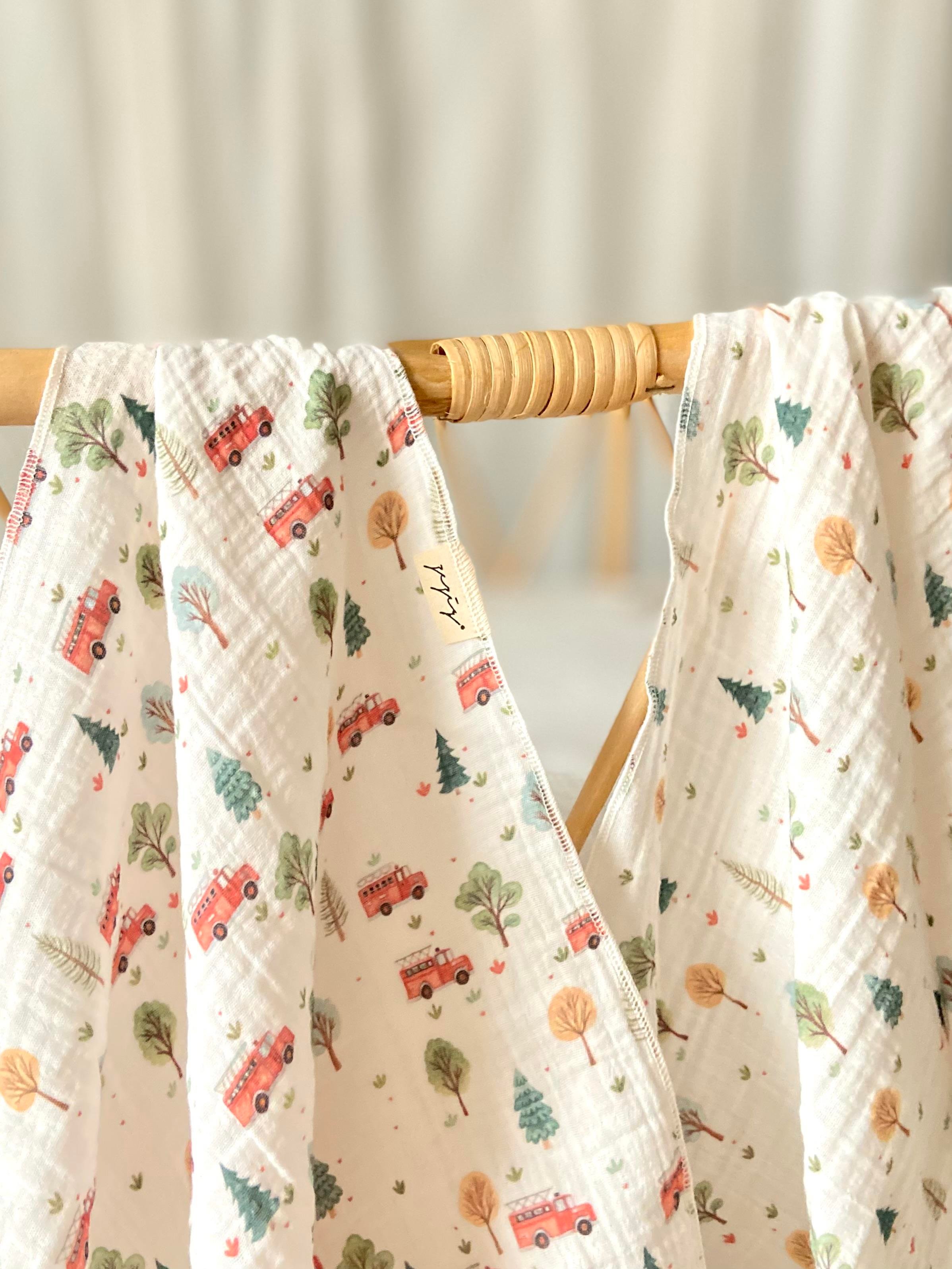 Hello Baby Series 2-Piece Muslin Blanket Set - Fire Brigade 85x85