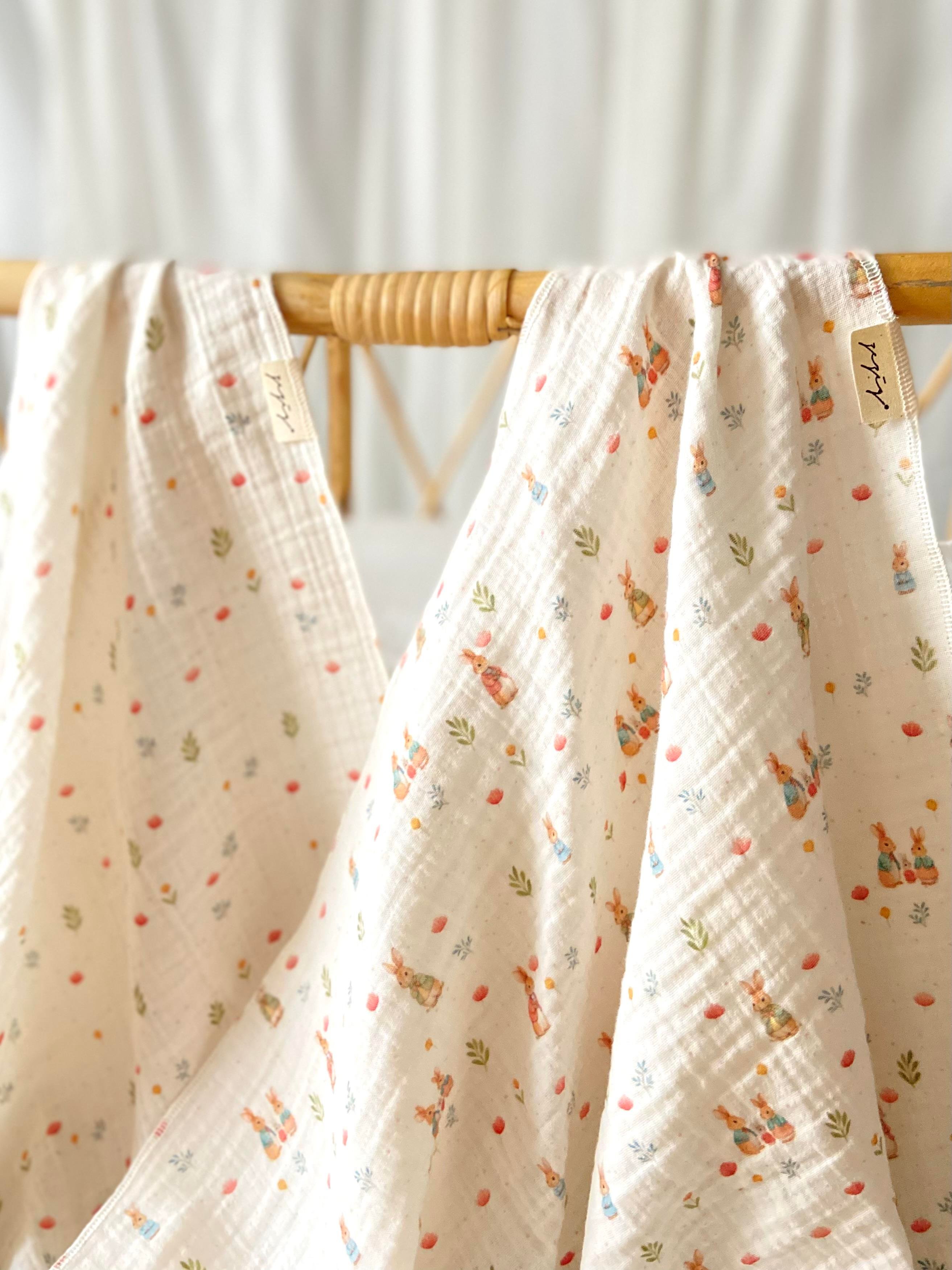 Hello Baby Series 2-Piece Muslin Blanket Set - Bunnies 85x85