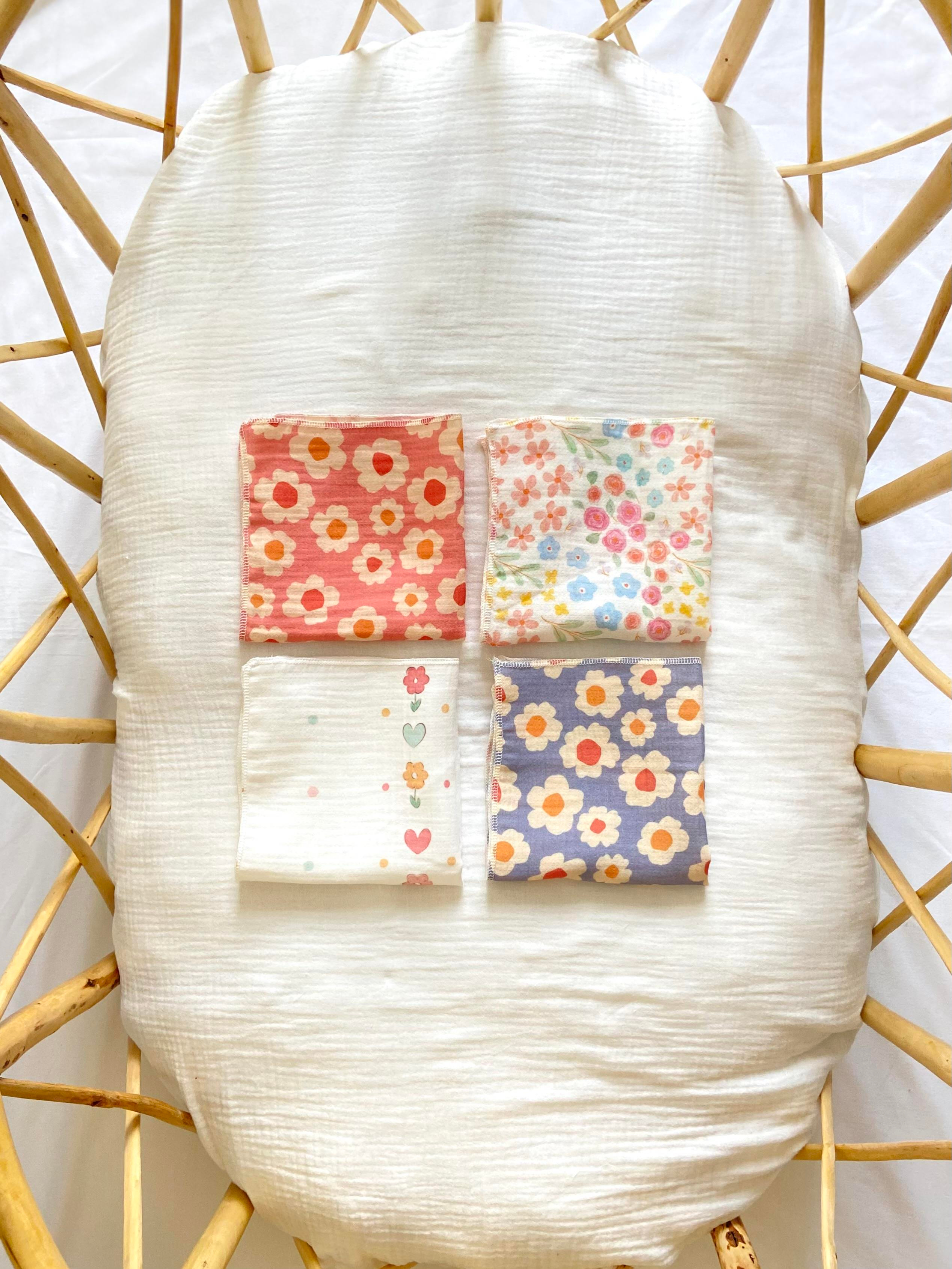 Müslin kumaşın yumuşak ve bürümcük olması sebebiyle ölçülerde farklılıklar görülebilir, ortalama ölçü 28x28'dir. Kenarları overlok dikişlidir.