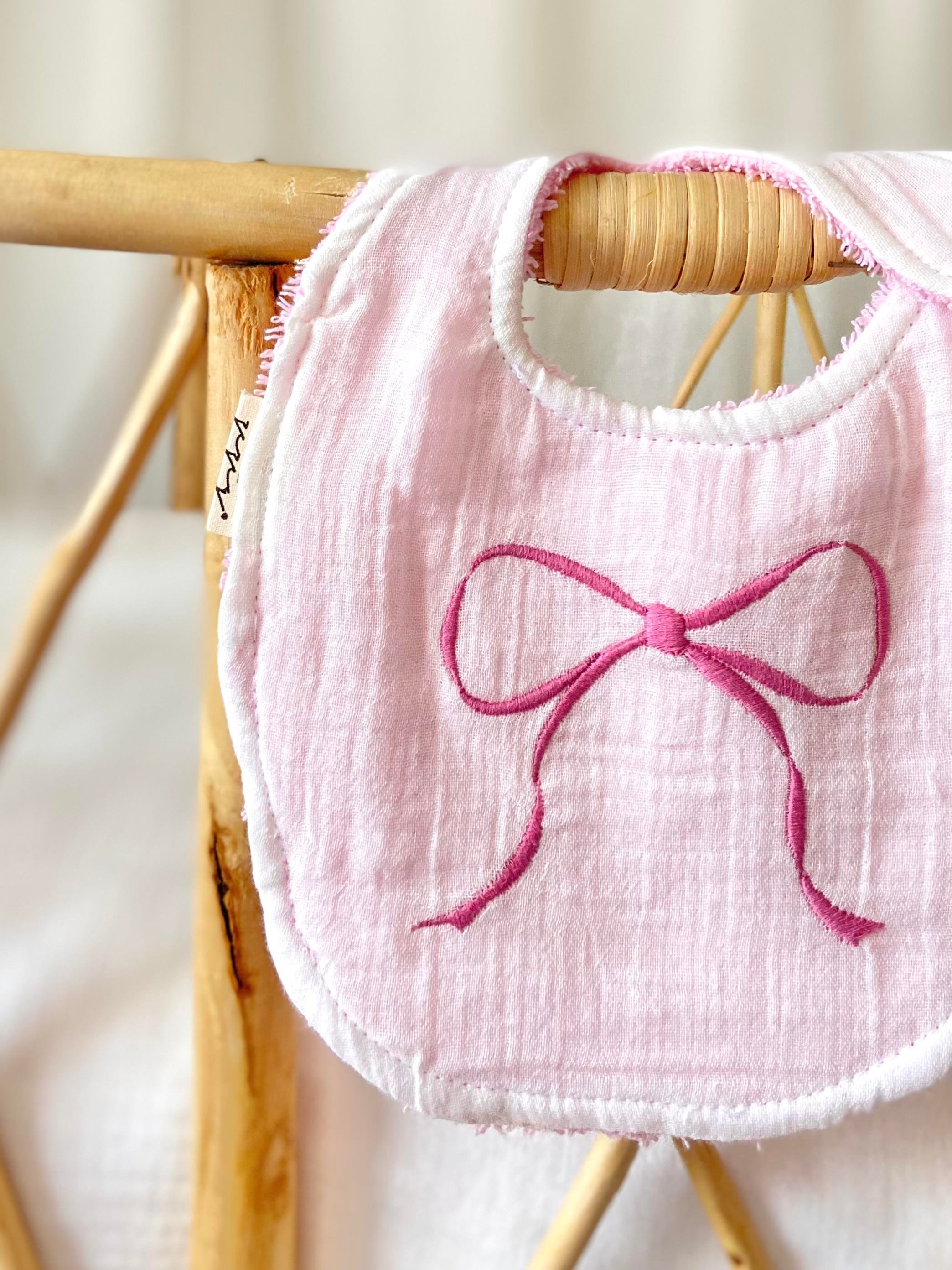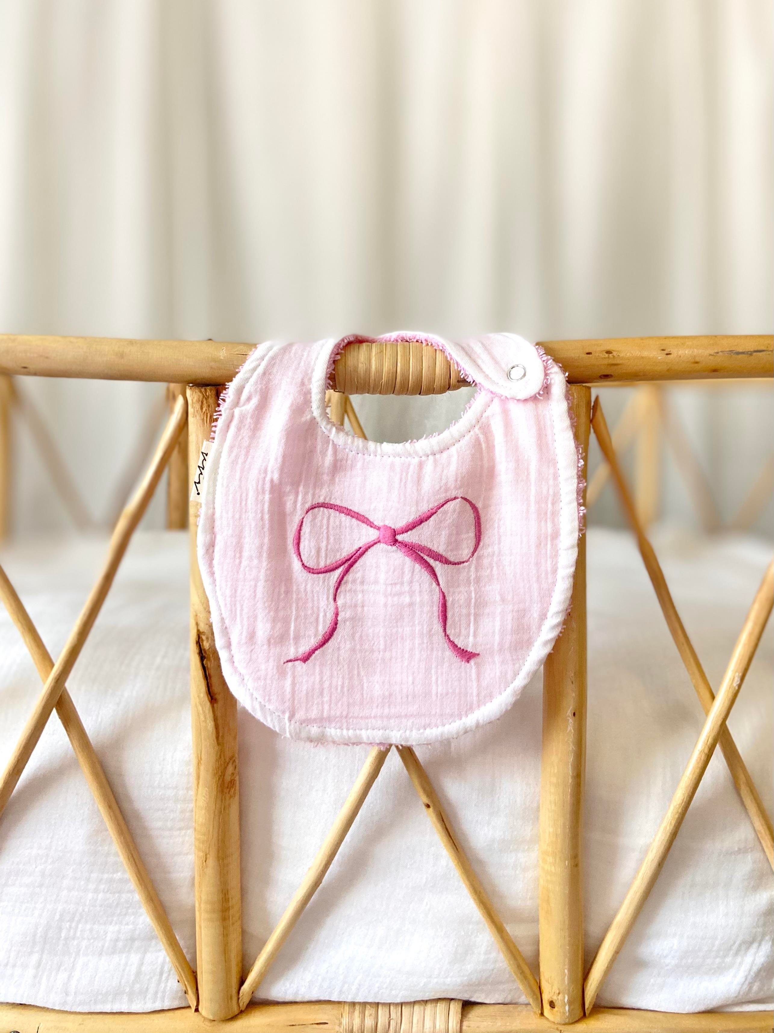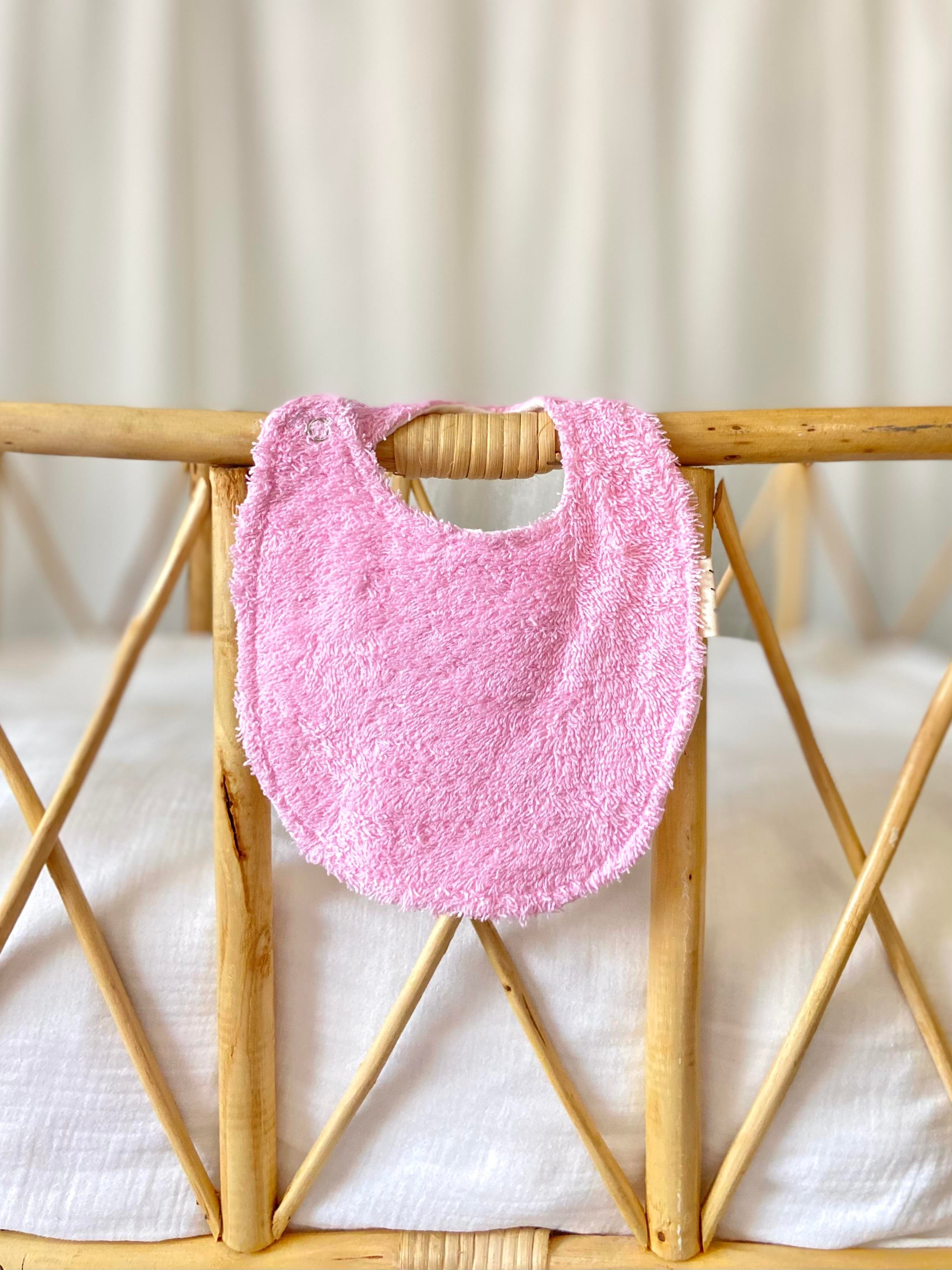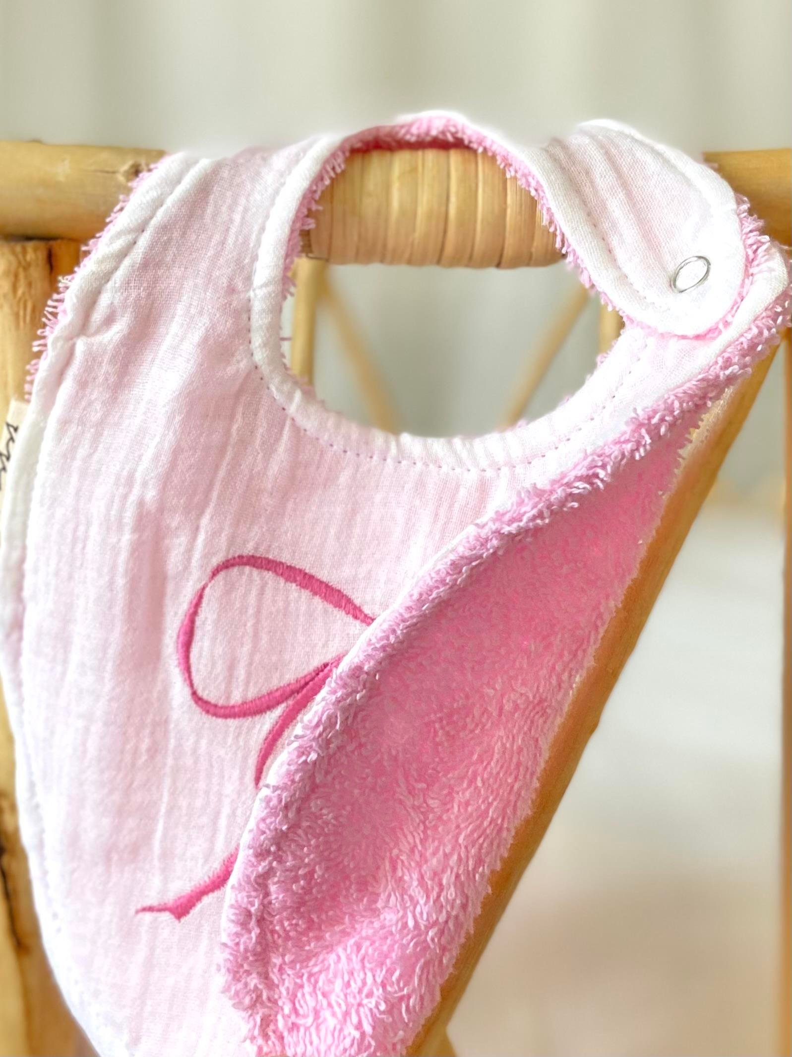 One ​​side is made of double-layer muslin and the other side is terry cloth. One side has embroidery.