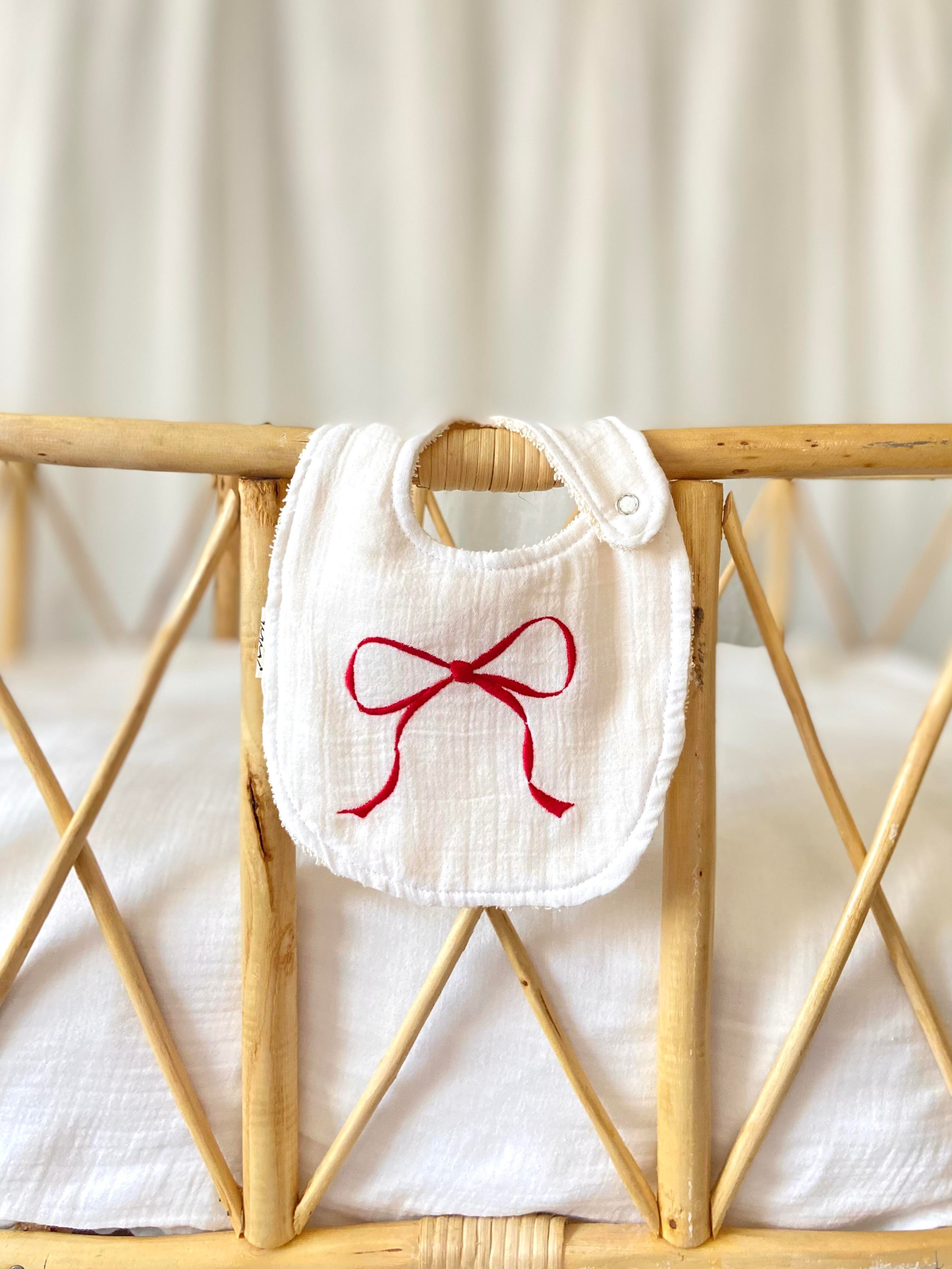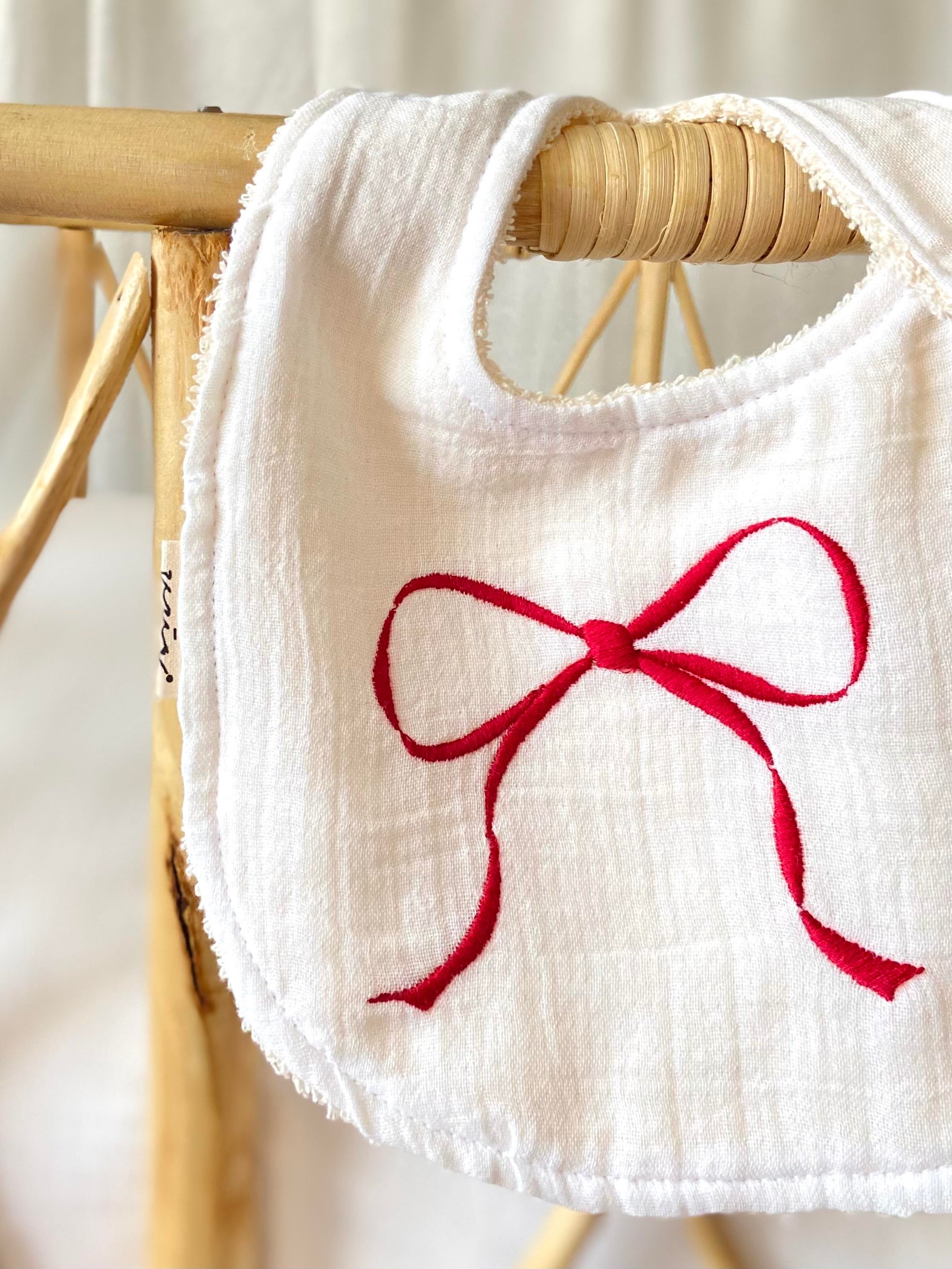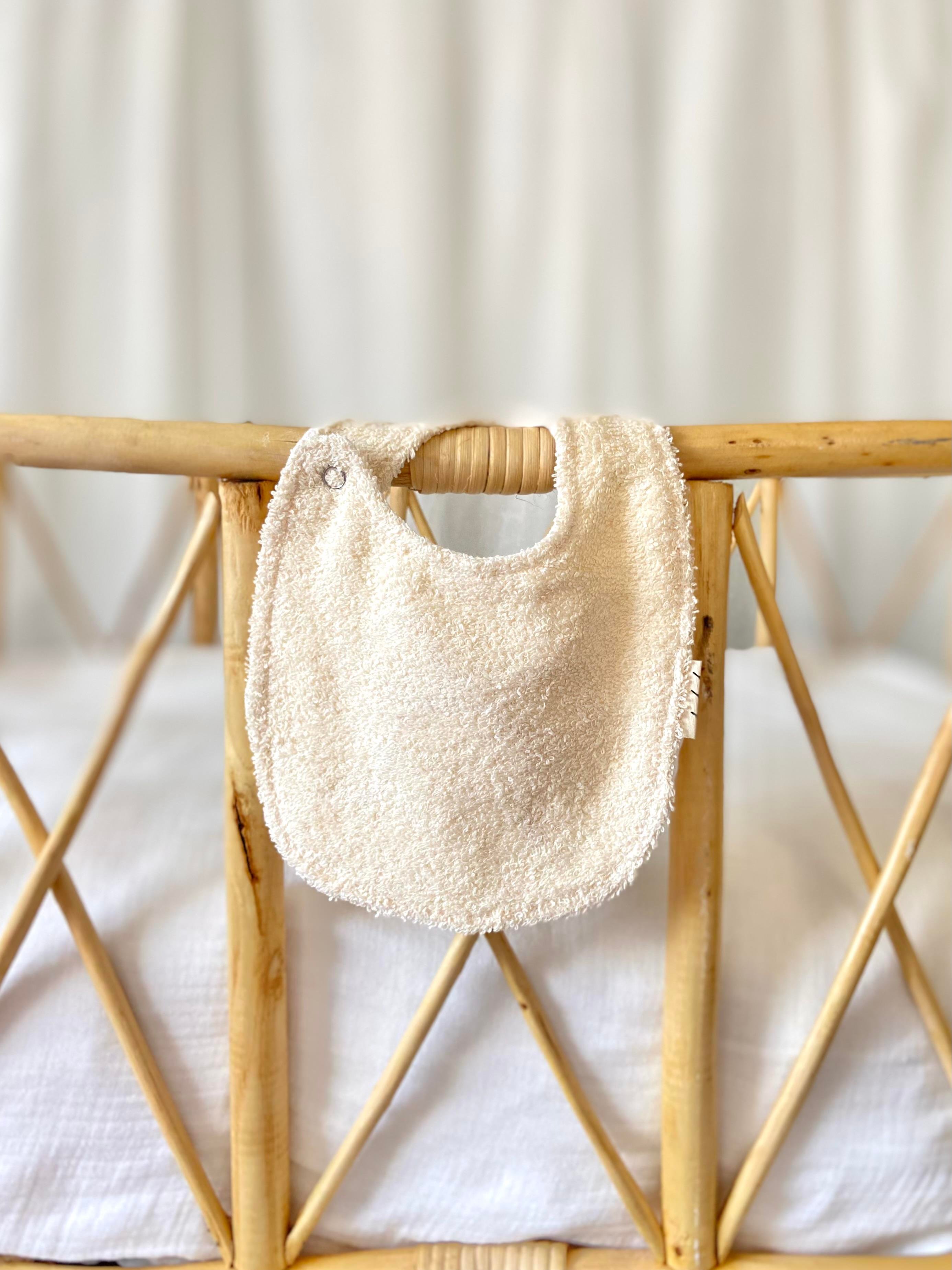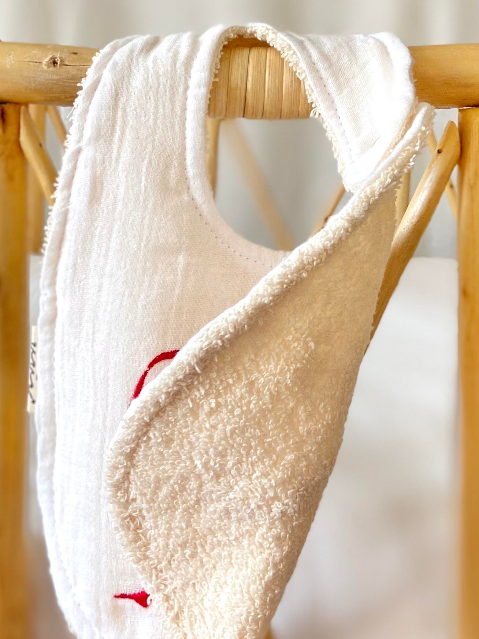 One ​​side is made of double-layer muslin and the other side is terry cloth. One side has embroidery.