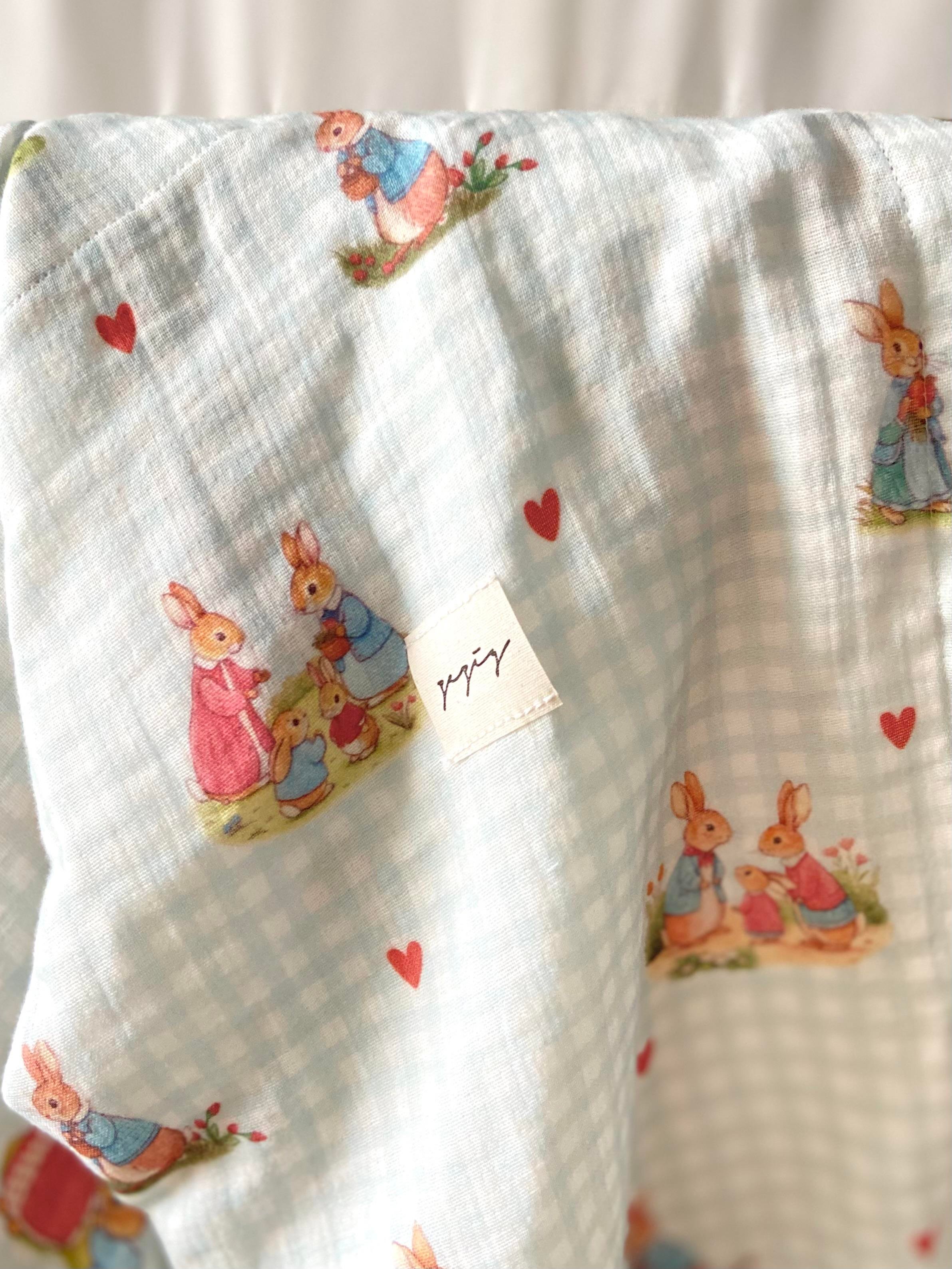 100% cotton double-layered woven muslin blanket. Printed with organic dyes.