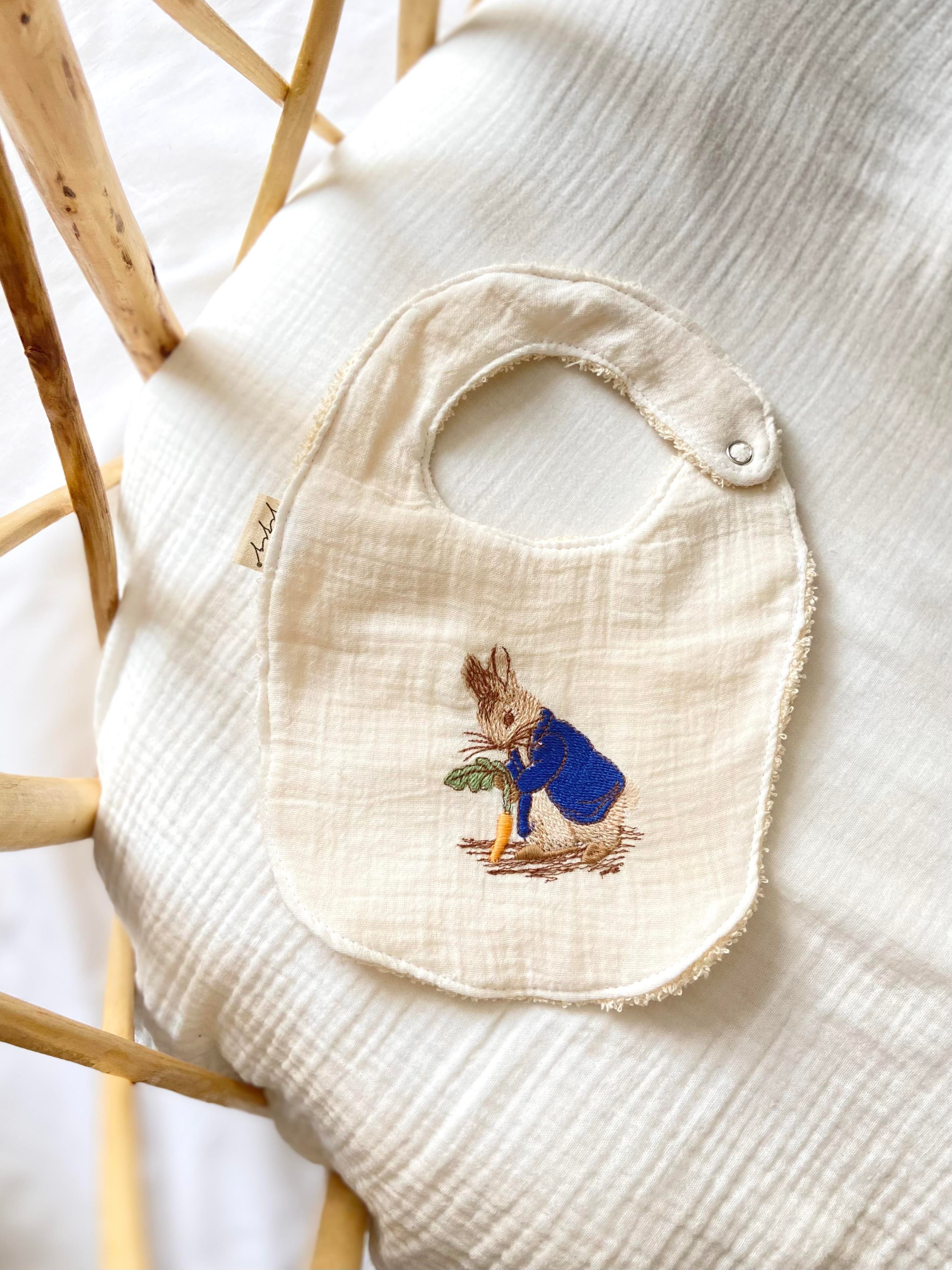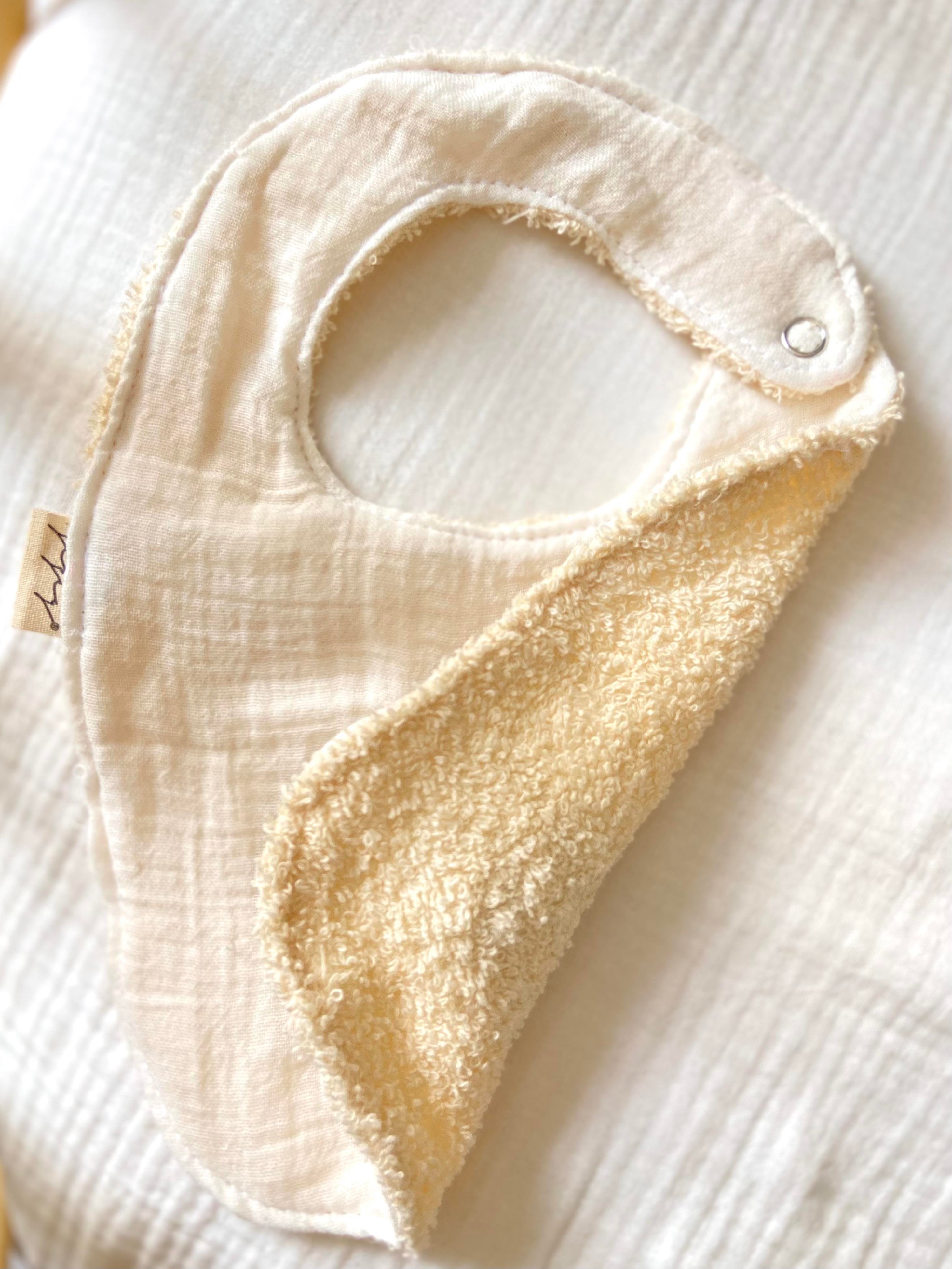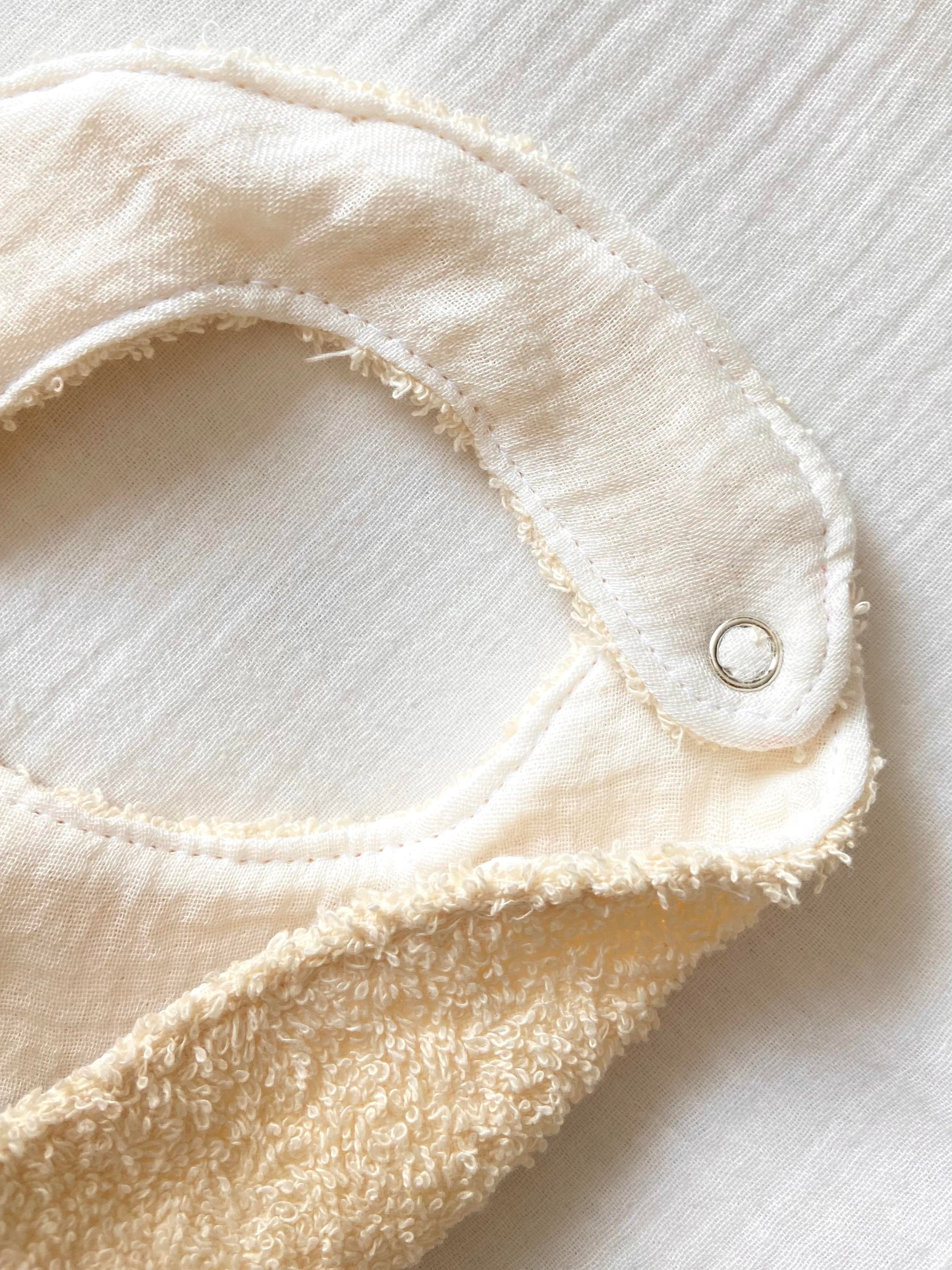 One ​​side is made of double-layer muslin and the other side is terry cloth. One side has embroidery.