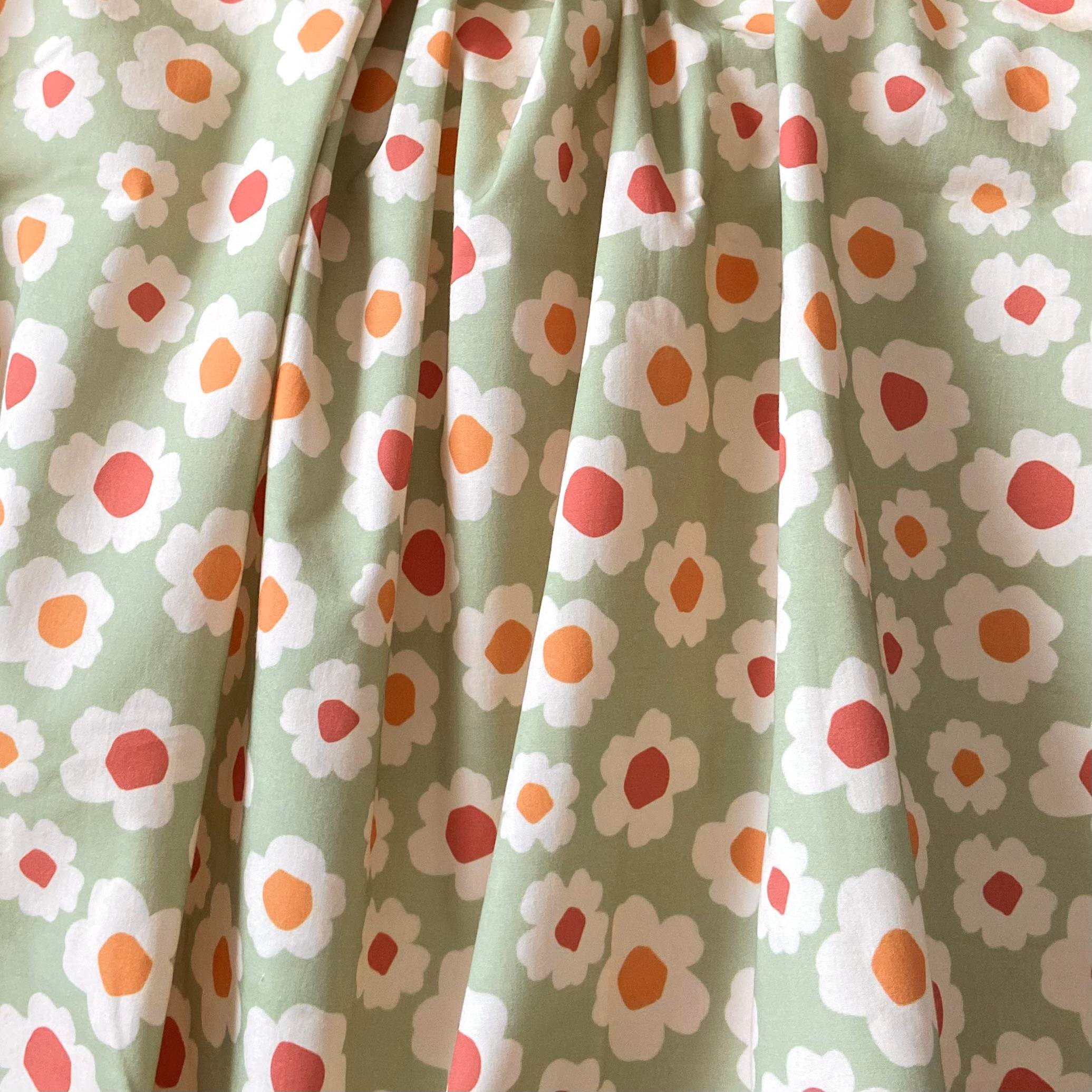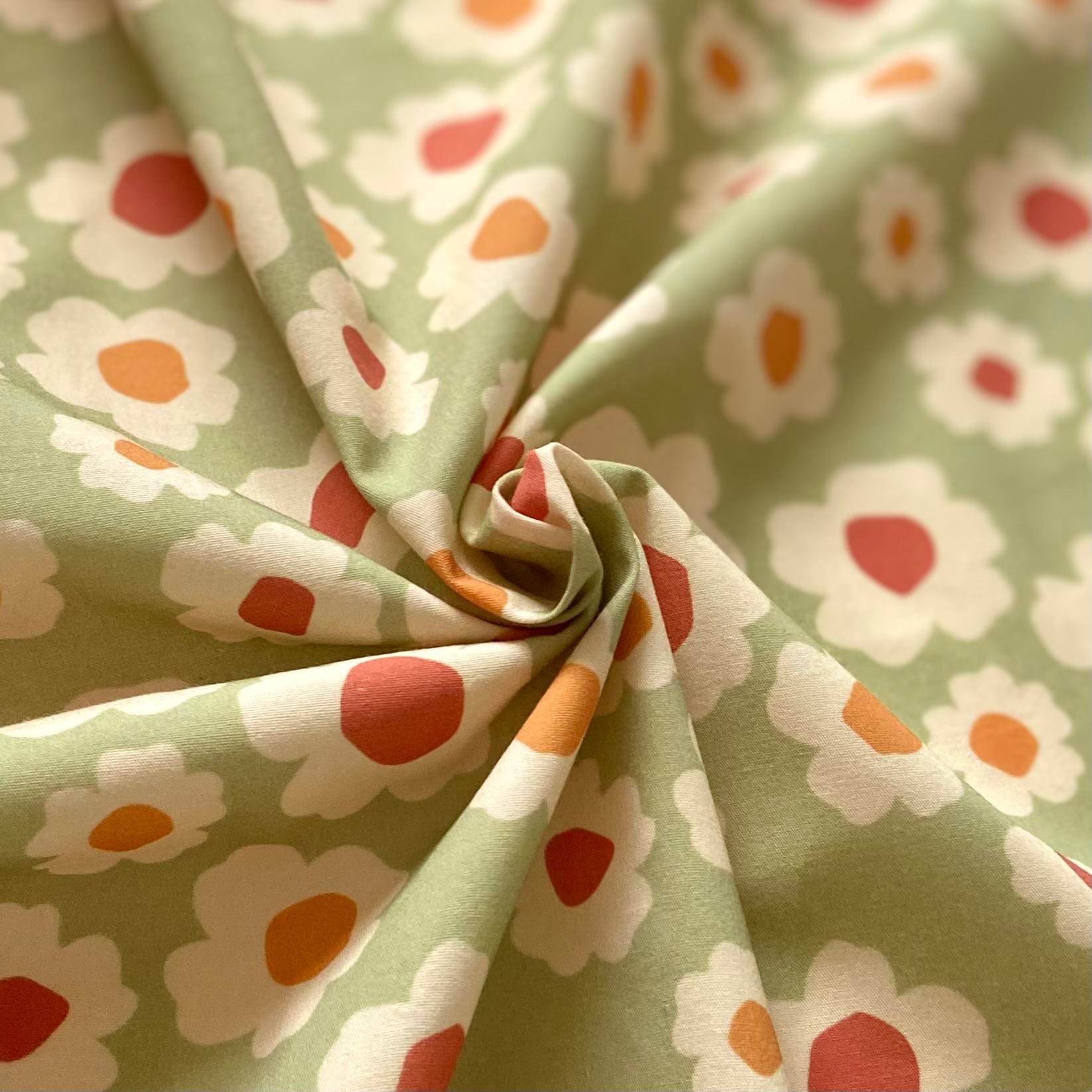 Zezig Daisy - Green Poplin Fabric