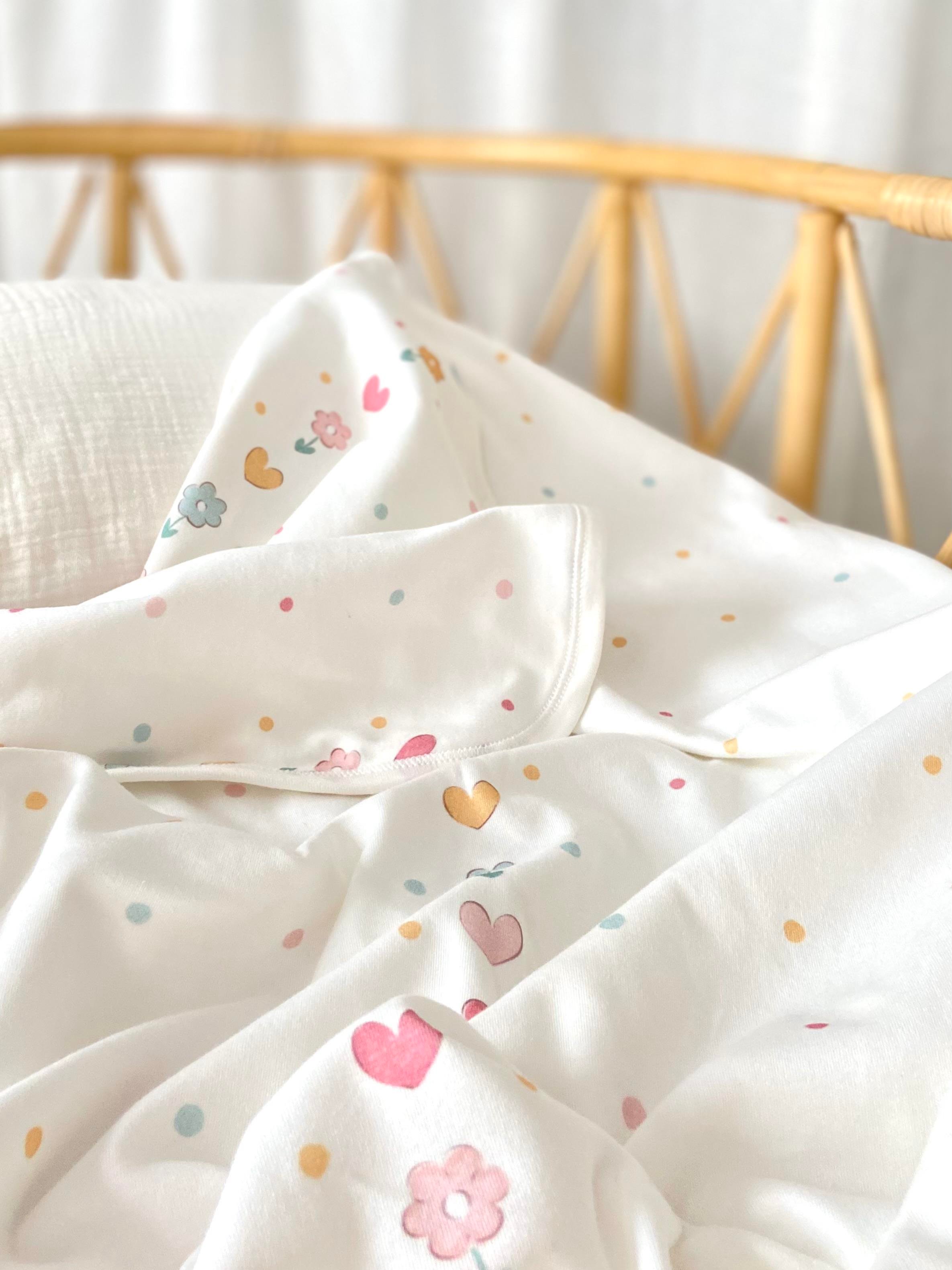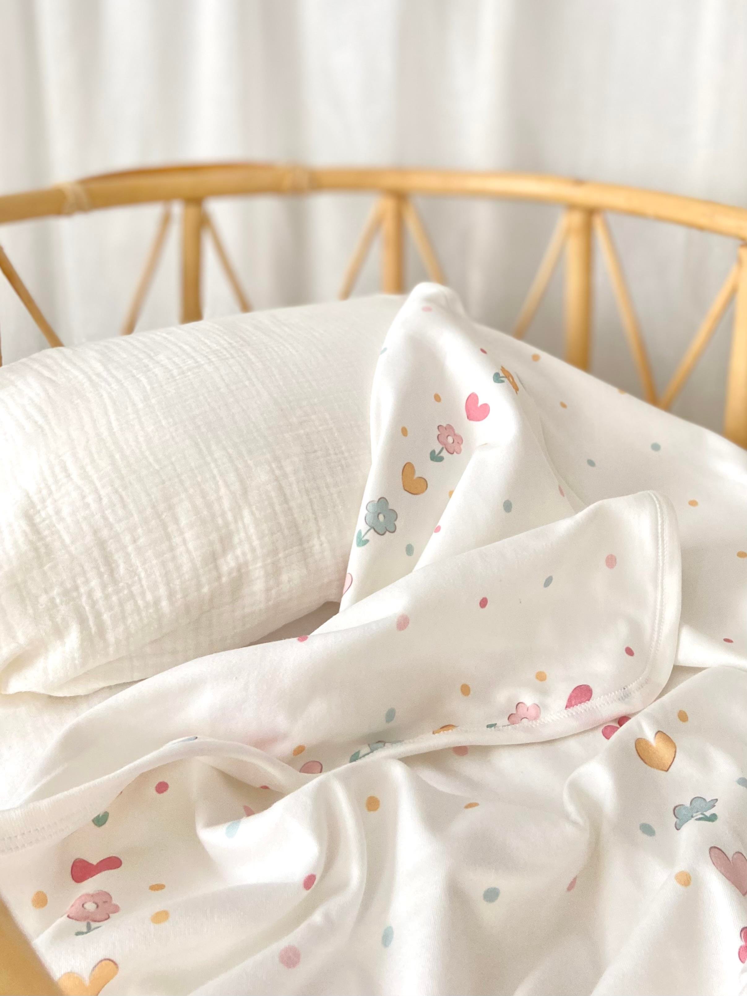 This 100% cotton interlock combed cotton baby blanket is an ideal choice for your baby. Its soft texture is gentle on your baby's skin and provides a healthy sleep environment.