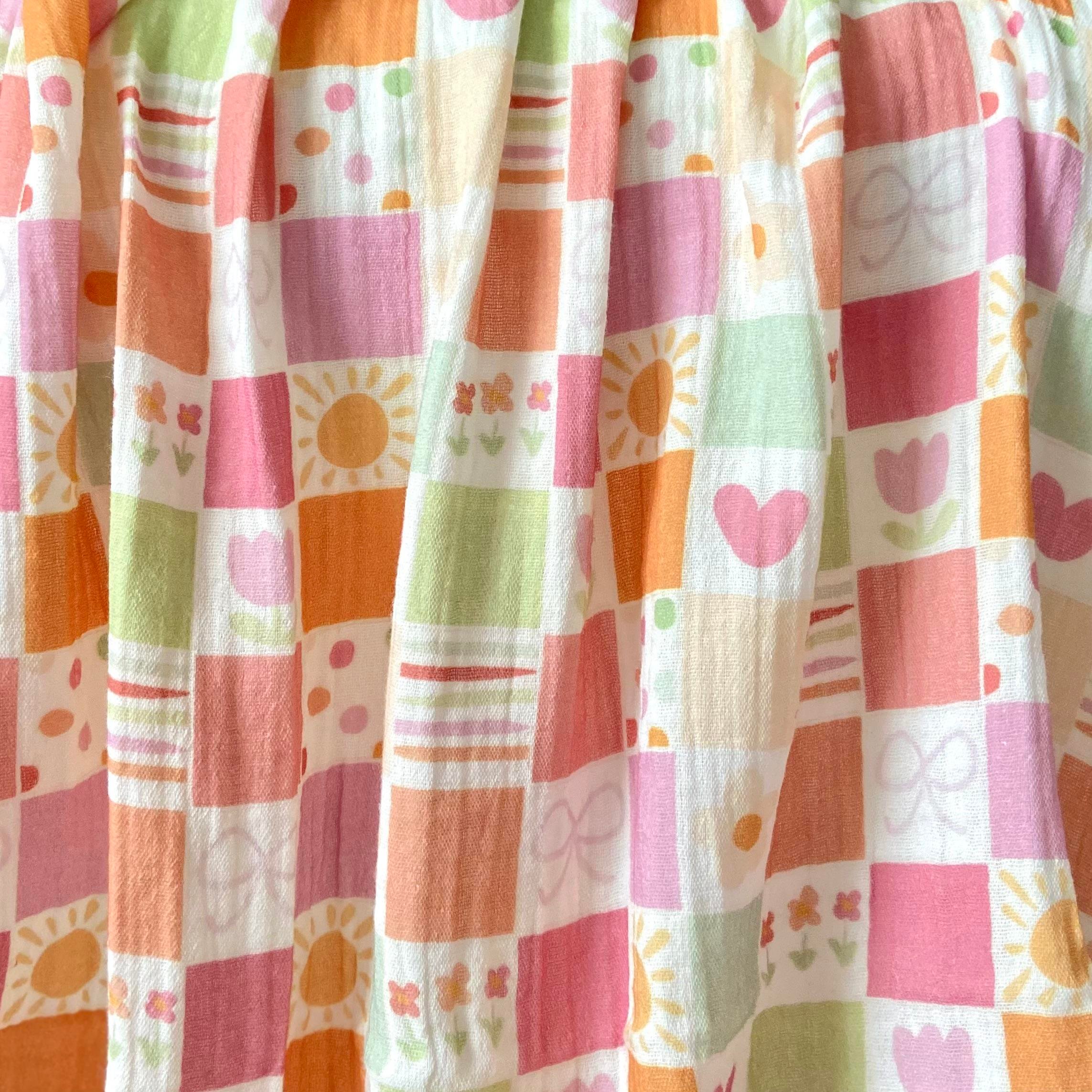 This product will shrink slightly when washed. We recommend that you do not cut it before washing and that you order with due consideration for any shrinkage that may occur due to shrinkage. Organic dyes were used in the pattern printing. It can be used in baby, children, and adult clothing by sewing dresses, rompers, tops and bottoms, etc.; in home textiles as multi-purpose covers; and in pouches, hair clips, toys, etc. It can be sewn and used in hobby applications.